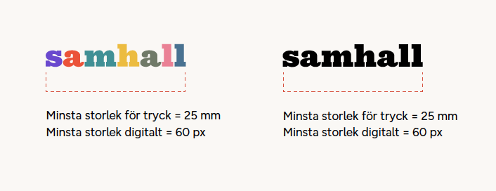 För att säkerställa läsbarheten och att återgivningen blir bra, finns begränsningar i hur liten logotypen får vara. För tryckt material är minsta bredden 25 mm. Digitalt bör den inte vara mindre än 60 pixlar bred.